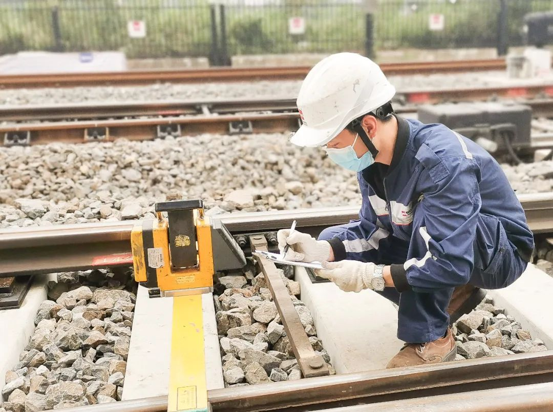 露天的接触网设备由于长期暴晒在外环境下,金属设备表面温度直逼40℃。巡检时的炙烤感迎面而来,吴勋和他的同事们坚持以标准化巡视流程完成每一个巡检项目,推坠砣、测b值……4个小时后,最终以写满数据的巡视记录和布满汗渍的工装结束了本次巡视任务。