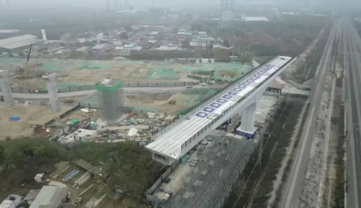 自今年2月开建以来,各参建单位精心组织,采用了BIM技术确保梁体施工符合规范及设计要求,在半年时间内完成桩基、承台和墩身施工。采用“双监测、双测量、双复核”的管理模式,保证球铰安装精度控制在1毫米以内。组建科研小组钻研C120超高标号混凝土最优配合比,并应用于转体球铰上、下转盘间填充部位。在国铁西安局集团的大力支持和配合下,仅用20天顺利完成桥梁附属件安装等准备工作。在转体前,参建单位对铁路接触网和馈线进行了铠装防护,以保护铁路设备及行车安全。转体时采用安全监控、线性监控等系统,对桥梁实施全方位监测测量,确保轴线偏差不超过1厘米,最终顺利完成桥梁转体。
