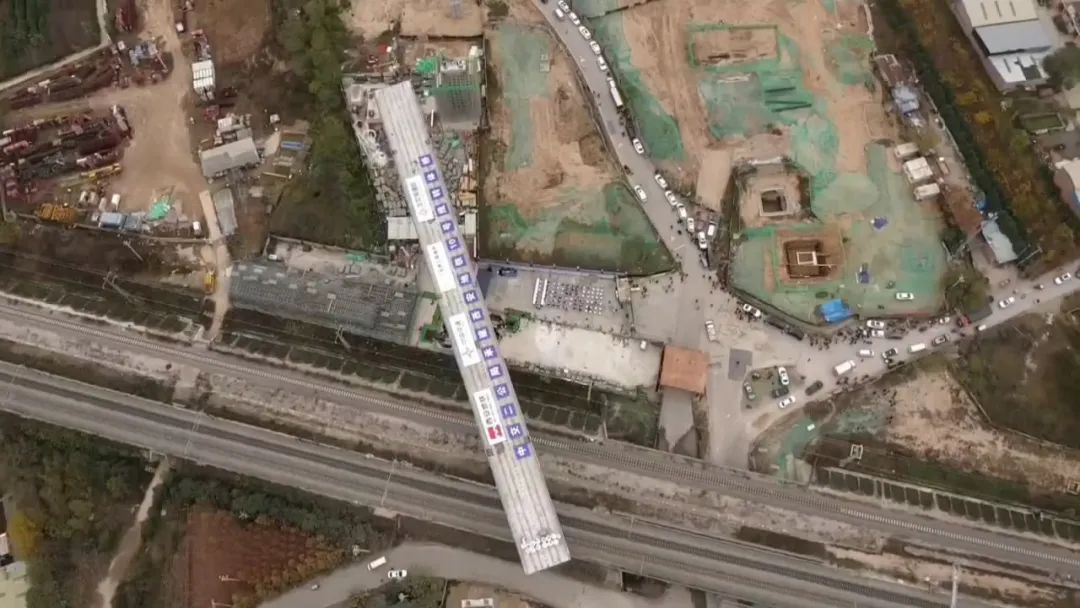 据技术人员介绍,桥梁转体施工是指将桥梁结构在非设计轴线位置预制成形后,通过转体就位的一种特殊施工方法。因地铁10号线杏渭路站~水流路站区间上跨西安铁路枢纽北环线,为保证既有线路设备及运营安全,需在平行于铁路线路的位置完成桥梁结构施工后,再利用铁路线路停运断电“天窗期”,由转体主控台控制2台千斤顶同时精准施加牵引力,确保桥梁结构每分钟转体0.86度。最终历时1小时,桥梁转体73.2度,精准对接铁路两侧桥墩,顺利到达指定位置。